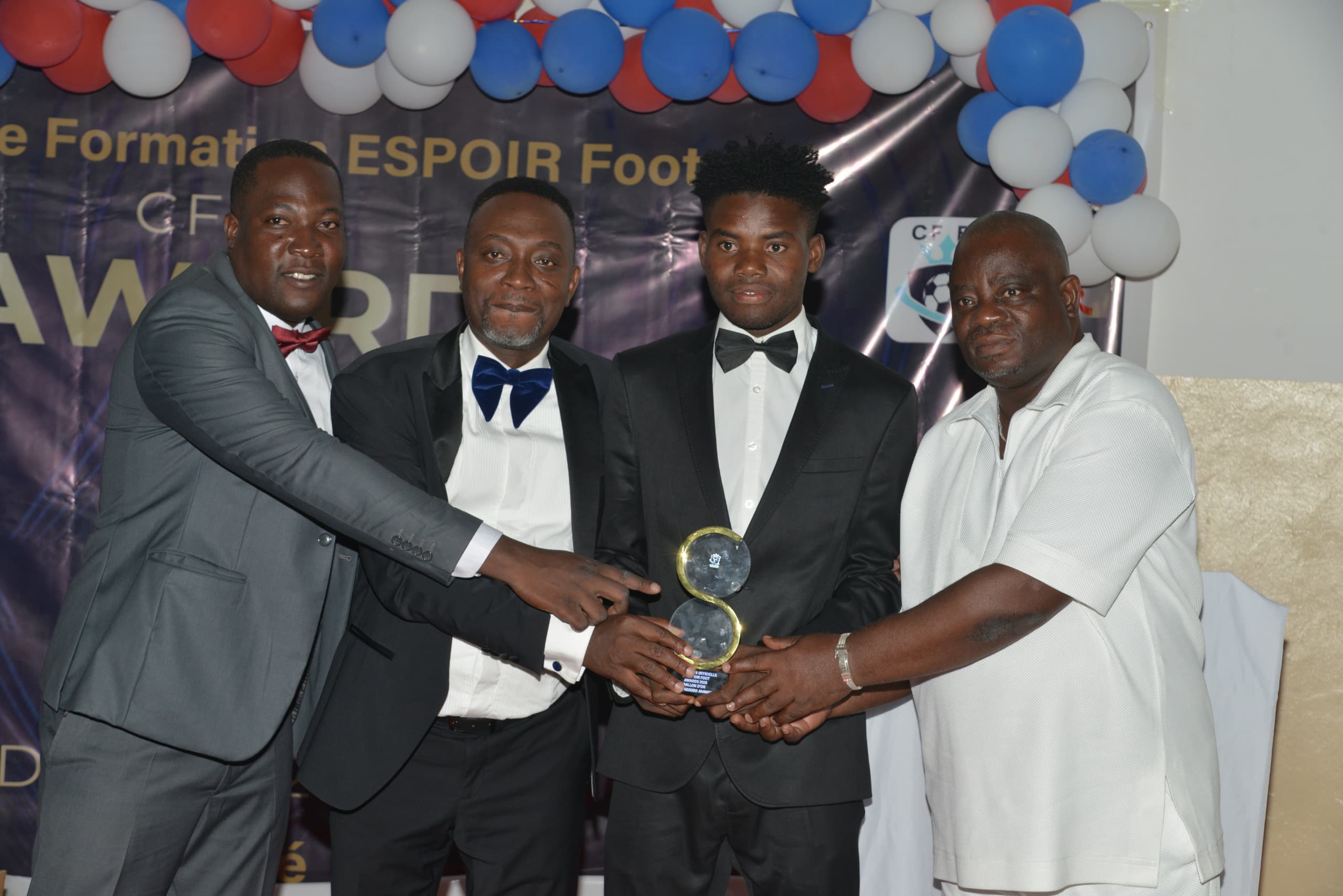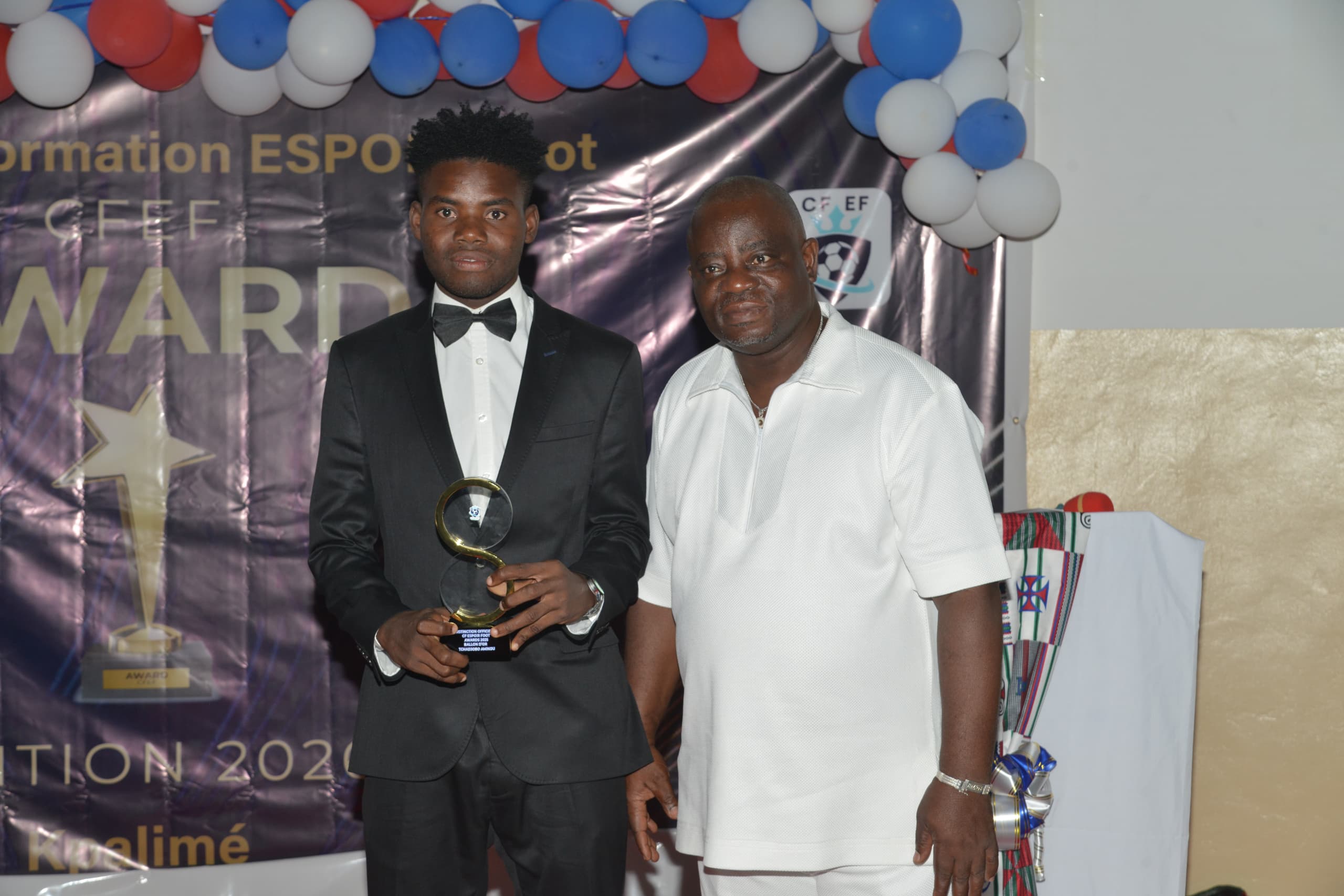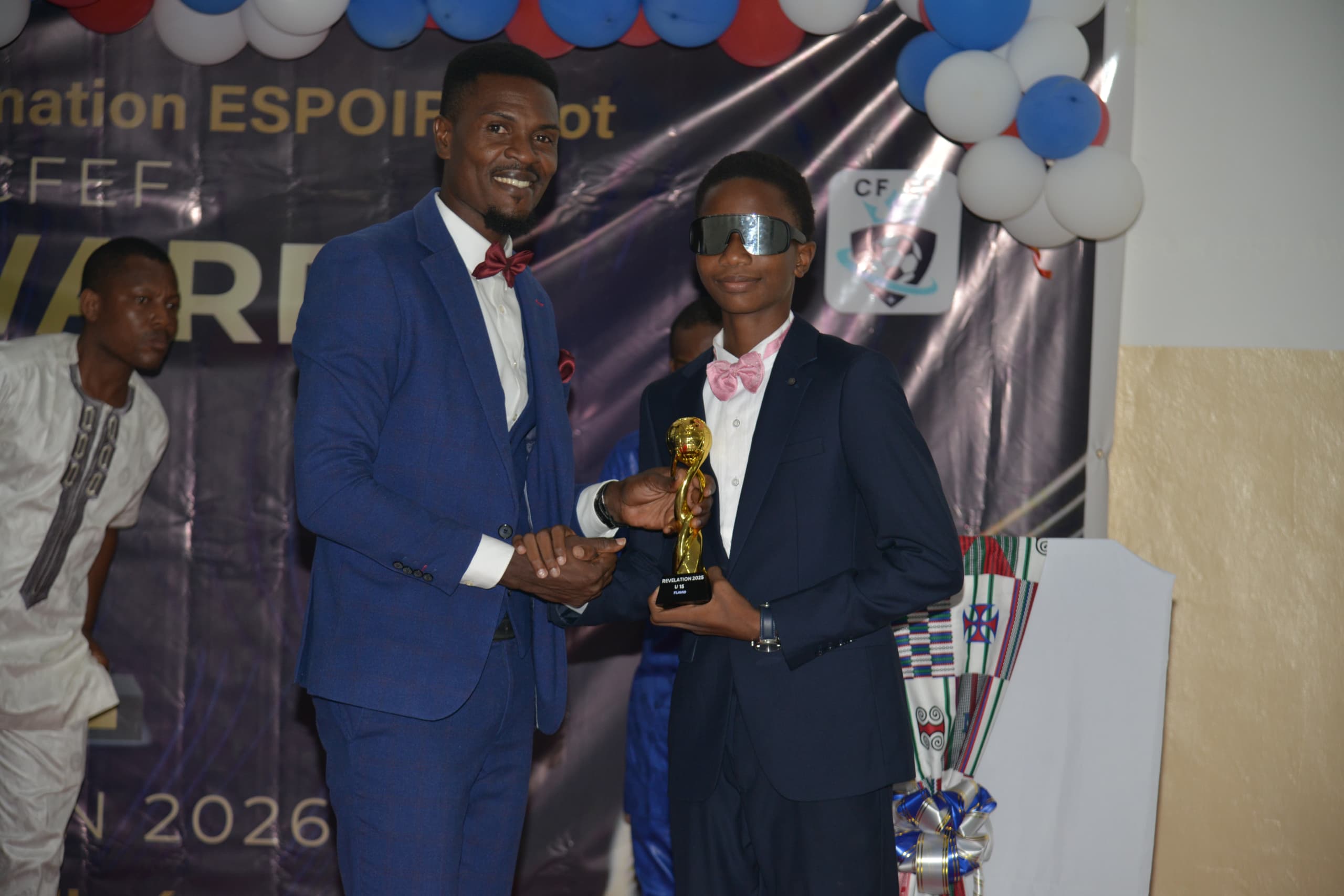 – lauréat DOUBLE PROJETS D’OR excellence sportif et réussite scolaire attribué à GBELEGUEWE Iqbal avec une moyenne de 16,60 lors des compositions du 1er trimestre également meilleurs buteur de la catégorie U15 de la saison. Et pour finir, Aminou Tchadjobo enlève le trophée ballon d’or de l’année 2025.