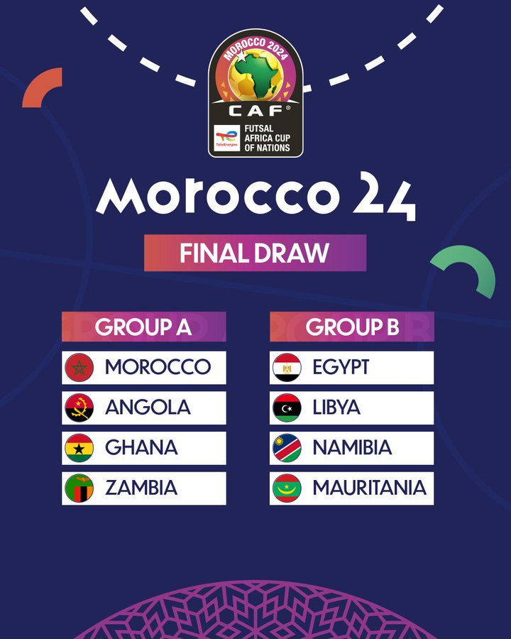 La Confédération Africaine de Football (CAF) a effectué, ce jeudi 7 mars, au Complexe sportif Mohamed VI, le tirage au sort de la Coupe d’Afrique des Nations de Futsal qui se déroulera à Rabat au Maroc du 11 au 21 avril 2024.