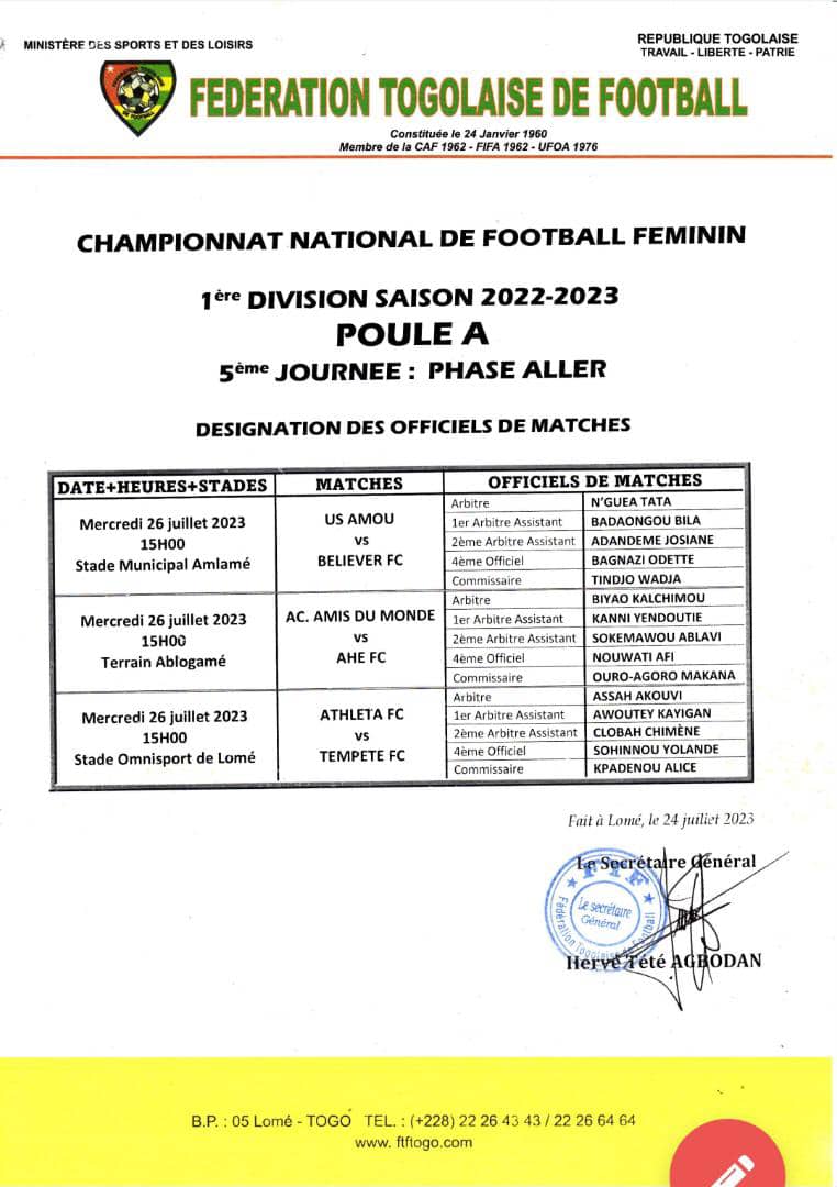 Les pensionnaires de la D1 féminine vont éplucher le 5e chapitre dans la poule A ce mercredi 26 juillet 2023. Dans le dur, la formation de Tempête FC joue le dauphin Athlèta FC.