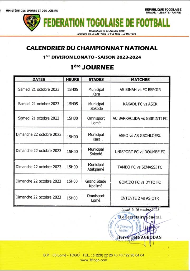 Les pelouses togolaises vont de nouveau vibrer au rythme du championnat de football de première division. La saison s’ouvre officiellement ce weekend du 21 au 22 octobre 2023 avec les rencontres de la première journée.