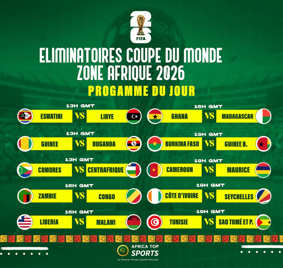 La première journée des éliminatoires de la coupe du monde continue de battre son plein sur le continent africain. Ce vendredi, 10 matchs sont au programme avec des combinaisons alléchantes.