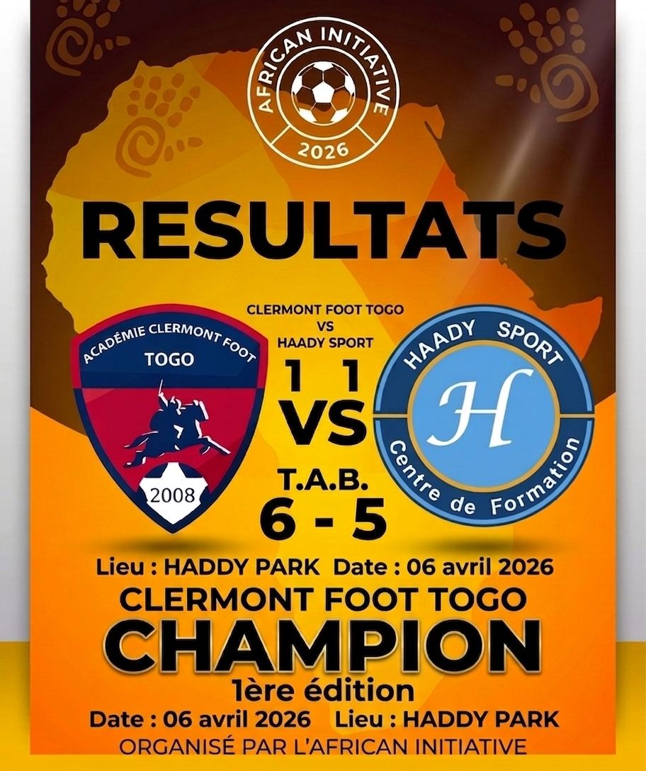 Au terme d’une finale intense et indécise, l’académie Clermont Foot Togo a remporté le Festival U13 organisé par AFRICAN INITIATIVE ce lundi, en dominant Haady Sport aux tirs au but (6-5), après un score nul et vierge (0-0) dans le temps réglementaire.