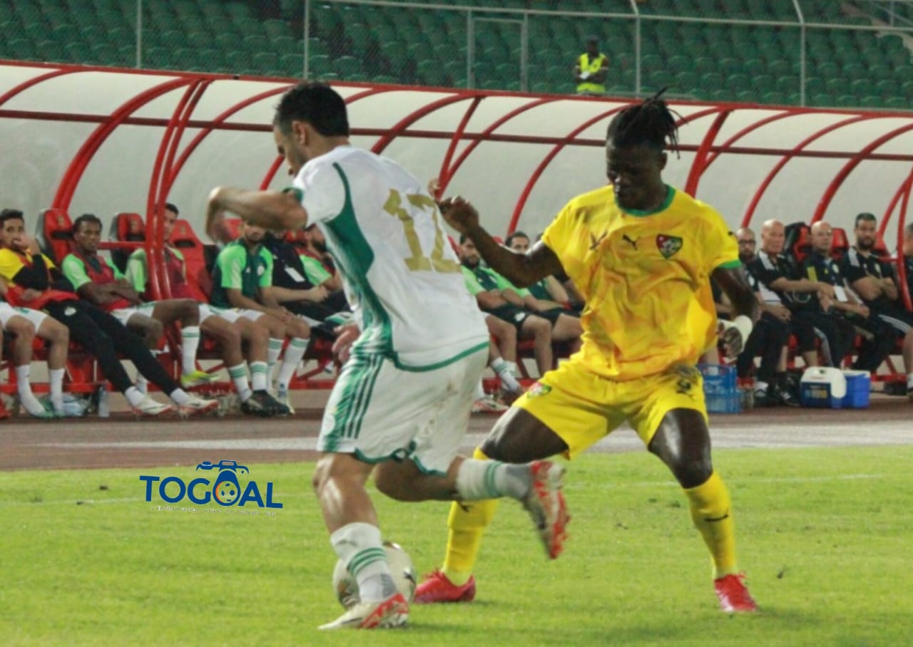 En préparation à Lomé en marge de la 34e édition de la CAN, la sélection algérienne de football a livré ce vendredi un match test face à la sélection locale du Togo. Dominateurs, les algériens n’ont pas tardé à prendre d’assaut le camp adverse. Procédant par des contre-attaques, les Éperviers ont failli surprendre leur adversaire. À la 18e minute, Akoro Bilali bien servi en profondeur élimine son vis-à-vis mais voit sa frappe repoussée par un défenseur algérien. L’Algérie se réveille et ne tarde pas à ouvrir le score. Sur un corner sortant venant de la droite, le portier Idrissa Ogodjo se loupe complètement sur sa sortie. Derrière le défenseur algérien Rami Bensebaini, de la tête, renvoie le ballon au fond des filets. 1-0, score à la pause.