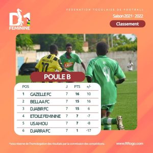 Pendant ce temps, un peu plus au nord, les joueuses de Gazelle FC (nouveau leader de cette zone), donnent rendez-vous à leurs homologues de l’Étoile Féminine au terrain municipal de Sokodé à 15 heures.