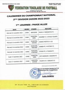 Début des hostilités de la D2 ce mercredi 16 novembre sur toute l’étendue du territoire national Togolais. 14 clubs dans le starting-blocks pour deux places dans l’élite au terme de la saison.