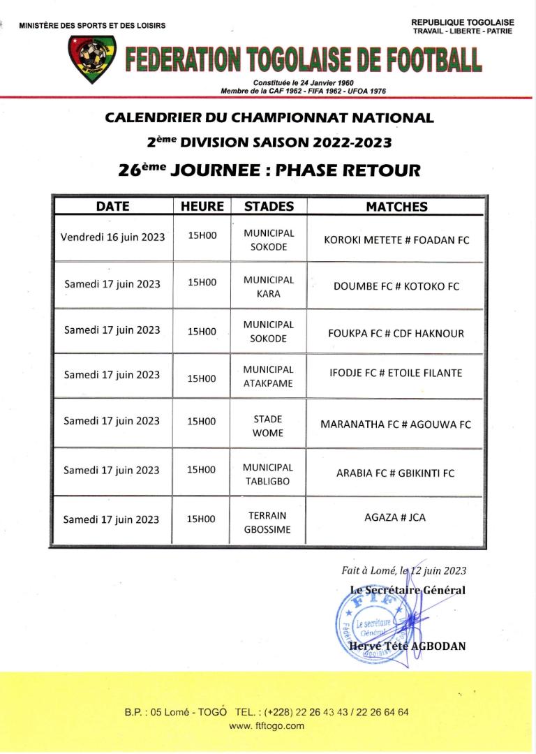 La D2 togolaise de football sera à son dernier chapitre du vendredi 16 au samedi 17 juin sur l’étendue du territoire national. Doumbé et Ifodjè seront dans un duel à distance pour la montée, tandis que Foukpa devra impérativement gagner pour espérer se maintenir.