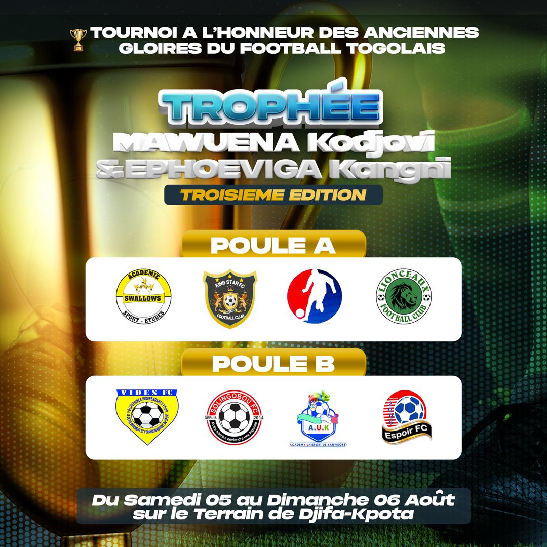Après la trêve pandémique de COVID 19, le tournoi de football dédié aux anciennes gloires du football togolais fait son come-back, à partir de ce weekend du 5 au 6 juillet 2023, sur le terrain de Djifa-Kpota. Une troisième édition qui sera à l’honneur de Kodjovi Mawuena et Efoevi Kangni Gilbert alias Robot 2, tous deux ex internationaux togolais.